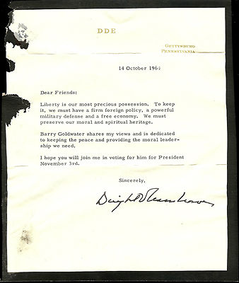 Title (ebay affiliate link): 1964 IKE EISENHOWER ENDORSEMENT LETTER OF BARRY GOLDWATER ON DDE STATIONERY