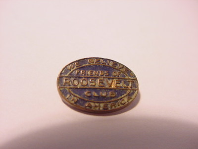 Title (ebay affiliate link): WE BELIEVE IN AMERICA FRIENDS CLUB FRANKLIN D ROOSEVELT POLITICAL PIN FDR