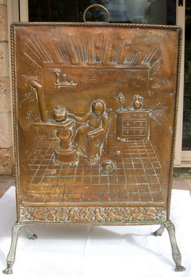 Title (ebay affiliate link): RARE ANTIQUE HANDEMBOSSED BRASS/COPPER FIREPLACE SCREEN