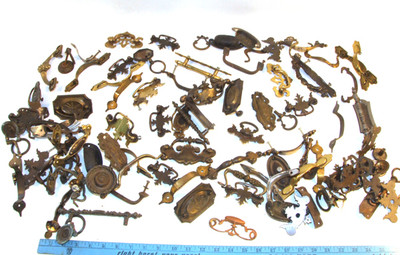 Title (ebay affiliate link): Big vtg & Antique Lot of Old Brass & Metal Drawer Pulls Handles Knobs Dresser NR