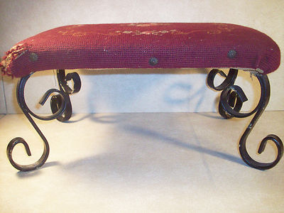 Title (ebay affiliate link): Vintage Foot Stool Ottoman Wrought Iron Metal Legs Tapestry Top