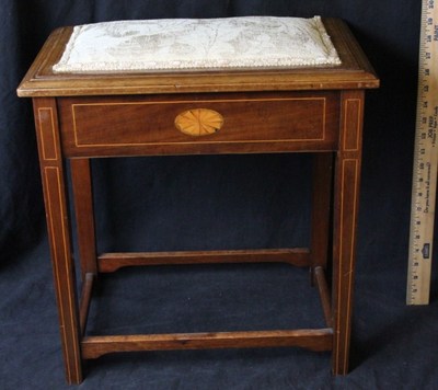 Title (ebay affiliate link): L100 ANTIQUE ENGLISH EDWARDIAN FANCY FAN INLAID WALNUT AND SATINWOOD BENCH