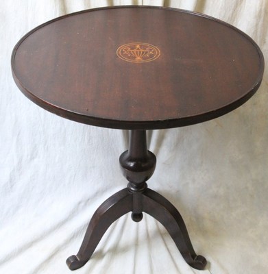 Title (ebay affiliate link): L104 ANTIQUE 19TH CENTURY MAHOGANY TILT TOP TEA TABLE SATINWOOD INLAID URN