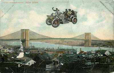 Title (ebay affiliate link): Fantasy~New York City~East River Bridge~Vintage Touring Car Flying~1908 Postcard