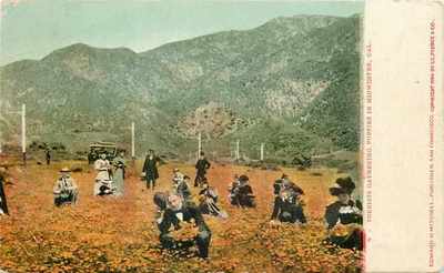 Title (ebay affiliate link): California~Tourists in Poppy Field~Gather Armloads of Poppies~Flowers~Mtns~1904