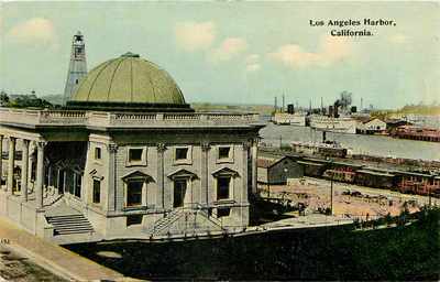 Title (ebay affiliate link): Los Angeles Harbor California~RR Box Cars~Docks~Steamships~Light House~1908 PC