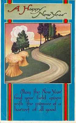 New Year~Art Deco~Orange Sky~White Cloud~Sheaves~Winding Road~Gibson Art Co