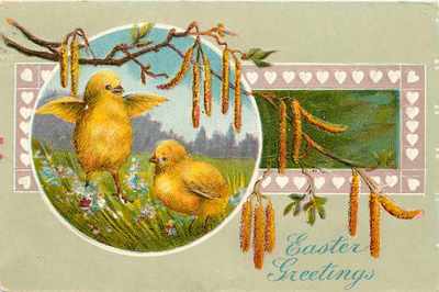 Title (ebay affiliate link): Easter Chicks Test Wings~Hanging Trees~Meadow~Embossed Hearts~#694~Saxony~1907