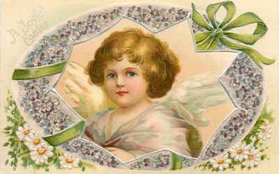 Easter Egg Panorama~Curly Haired Angel In~Violets~Daisy~Silver Filigree~Germany