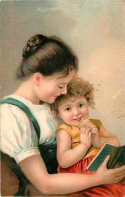 Mama~Little Girl on Lap~Read Book~Hands Clasped~PFB no. 6515 Gelat~Gloss~Germany