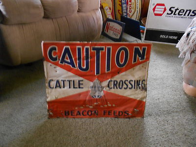 18''x 14'' TIN BEACON FEEDS CATTLE CROSSING SIGN