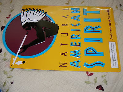 Title (ebay affiliate link): NATURAL AMERICAN SPIRIT TIN CIGARETTE SIGN INDIAN CHIEF SMOKING TOBACCO 12"X19"