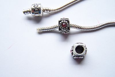PINK Antique Silver Charm Spacer Bead Fit Bracelet