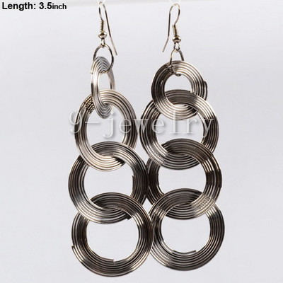 Antique Donut Tibet Silver Long Dangle Earrings TS1005