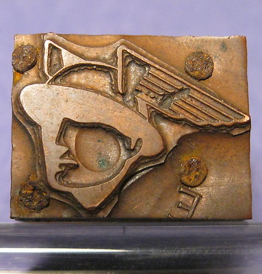 Antique FORD MERCURY EARLY LOGO Copper Wood Printer's Block Winged Messenger