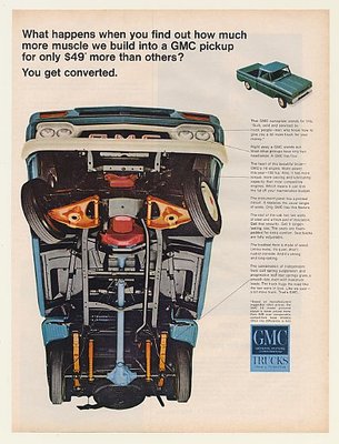 Title (ebay affiliate link): 1966 GMC I-6 Pickup Truck More Muscle Underside View Ad
