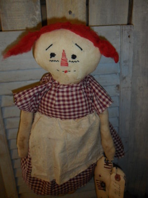 Primitive Grungy Aged look Raggedy Annie Doll with Heart #1 bnb