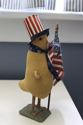 Title (ebay affiliate link): Great Little Folk Art Patriotic Chick with American Flag! Primitive OOAK NR