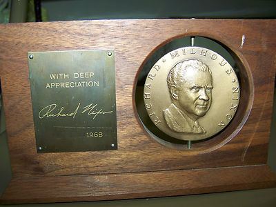 Title (ebay affiliate link): Richard Milhous Nixon-Bronze Medal on Wooden Stand !!!!!