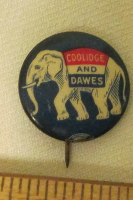 Title (ebay affiliate link): Authenic Not Repro 1924 Coolidge Dawes Celluloid Pin Back for President Elephant