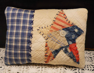 Title (ebay affiliate link): PRIMITIVE Folk Art AMERICANA Star PILLOW made from Antique QUILT