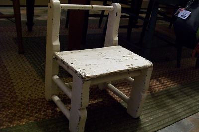 ANTIQUE AAFA OLD WHITE PAINT STOOL !
