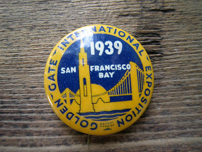 Title (ebay affiliate link): VINTAGE ORIGINAL PIN BACK BUTTON 1939 INTERNATIONAL EXPOSITION GOLDE-GATE BRIDGE