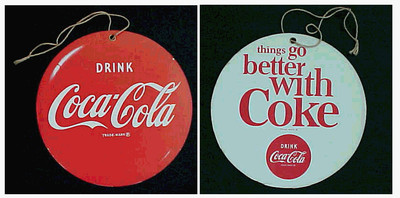 Title (ebay affiliate link): ORIGINAL 2-SIDED DRINK COCA COLA HANGER TYPE ADVERTISING SIGN WITH TWO MESSAGES