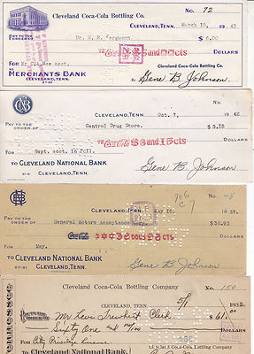 Title (ebay affiliate link): CLEVELAND COCA-COLA BOTTLING CO. CHECKS 4 DIFFERENT 1933, 1937, 1942, 1943