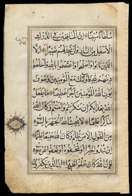 Title (ebay affiliate link): 1625 Large Illuminated Koran Leaf Persian Iran Islamic Large Gold Sura Heading