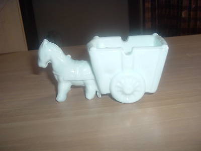 VINTAGE WESTMORELAND? MILK GLASS ASHTRAY HORSE & CART