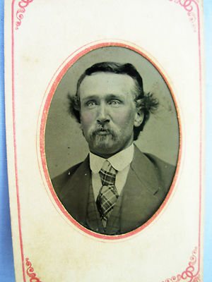 Title (ebay affiliate link): ANTIQUE TINTYPE PHOTO DAPPER GENT NICE MUSTACHE PLAID TIE RED OAK JUNCTION IOWA