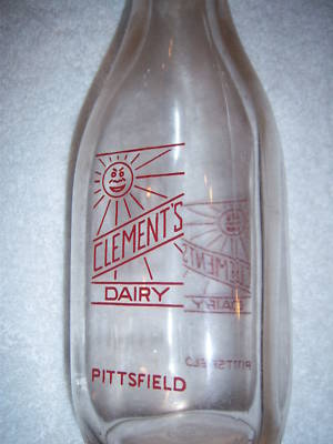 Clements Dairy Quart Milk Bottle c1950s Pittsfield Mass