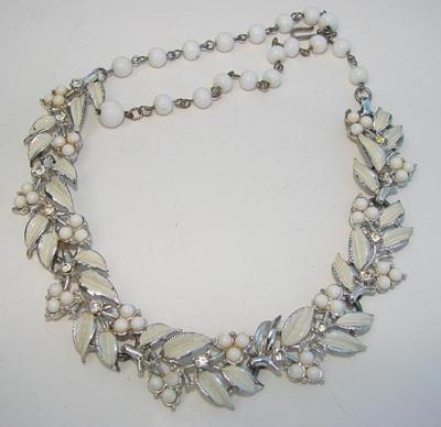 VINTAGE ENAMELED AND MILK GLASS & RHINESTONE NECKLACE