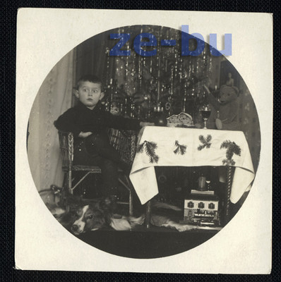 Title (ebay affiliate link): vintage photo LITTLE BOY AT CHRISTMAS TREE W/ TEDDY BEAR & TOY TRAIN 1920s