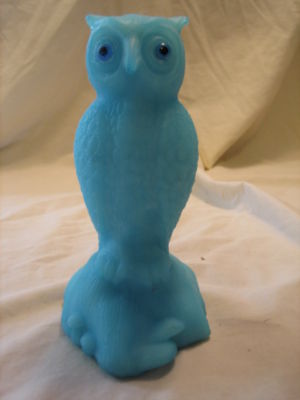 LARGE Westmoreland ANTIQUE BLUE Milk Glass OWL W Label