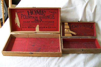 2 OLD HOME SYRINGE WOODEN BOXES ! NO.2 AND NO.3 !