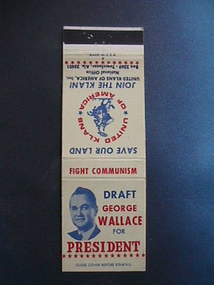 Title (ebay affiliate link): Vintage George Wallace for President Matchbook