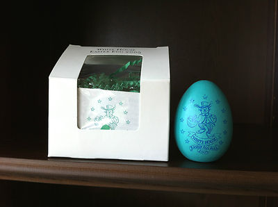 NEW-2005-WHITE HOUSE EASTER EGG-BLUE GEORGE/LAURA BUSH ORIGNAL BOX & PAPERWORK