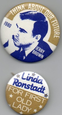 Title (ebay affiliate link): GOVERNOR JERRY BROWN 1980 CAMPAIGN BUTTON PAIR LINDA RONSTADT DEMOCRAT USA