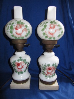 Title (ebay affiliate link): 2 Vintage Petite Electric Gone with the Wind Boudoir Lamps Milk Glass 15"