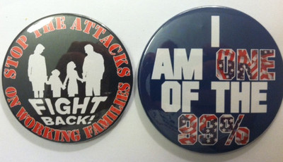 Title (ebay affiliate link): Two Modern Day Cause Pinbacks for Working Families and the 99%