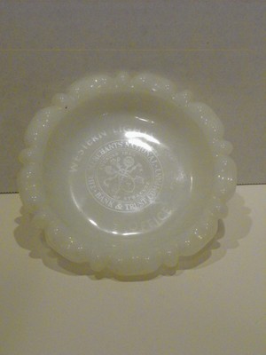 Vintage The Merchants National Bank & Trust of Syracuse Milk Glass Ashtray marke