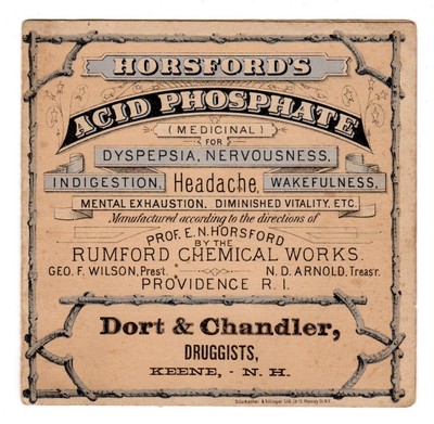 Title (ebay affiliate link): ca 1880s HORSFORD'S ACID PHOSPHATE Trade Card / Leaflet QUACK MEDICINE KEENE NH