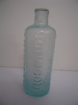 ANTIQUE JOHNSON AMERICAN ANODYNE LINIMENT TINTED GLASS BOTTLE