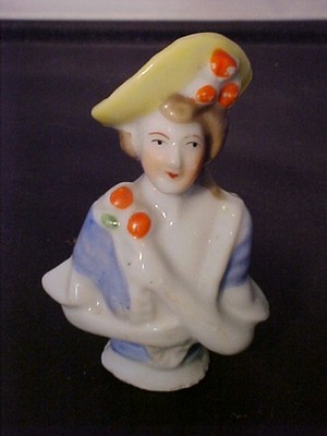 Title (ebay affiliate link): Antique Half Doll Pin Cushion Porcelain Lady Figure Bisque Pincushion #4