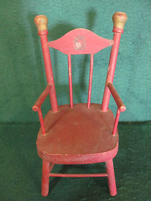 ANTIQUE 9 1/2 INCH RED WOODEN DOLL CHAIR