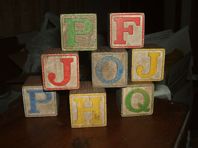 Title (ebay affiliate link): 8 OLD EMBOSSED & PRINTED ALPHABET WOOD TOY BLOCKS 1 5/8" LETTERS AND NUMBERS