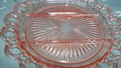 Title (ebay affiliate link): BEAUTIFUL**MINT***PINK-ROSE TINTED DEPRESSION GLASS DIVIDED RELISH TRAY/PLATTER