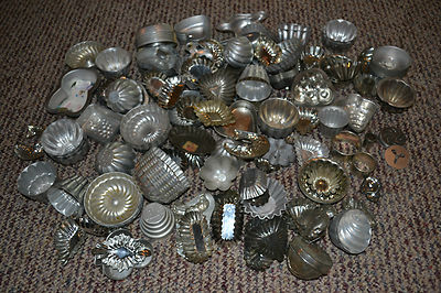 GIANT collection of Vintage Baking Jello Cupcake Molds TIns Aluminum Cookie Cut